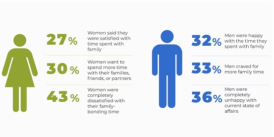 Contrary to the popular perception that women prefer to spend more time with family, the survey found that men also crave for the same. This is interesting because men are perceived as workaholics. In fact, the percentage of men wanting more family time was marginally higher than that of women.